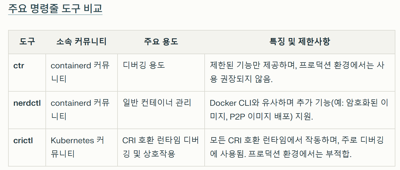 • containerd 설치 시 기본 제공되는 CLI 도구입니다.