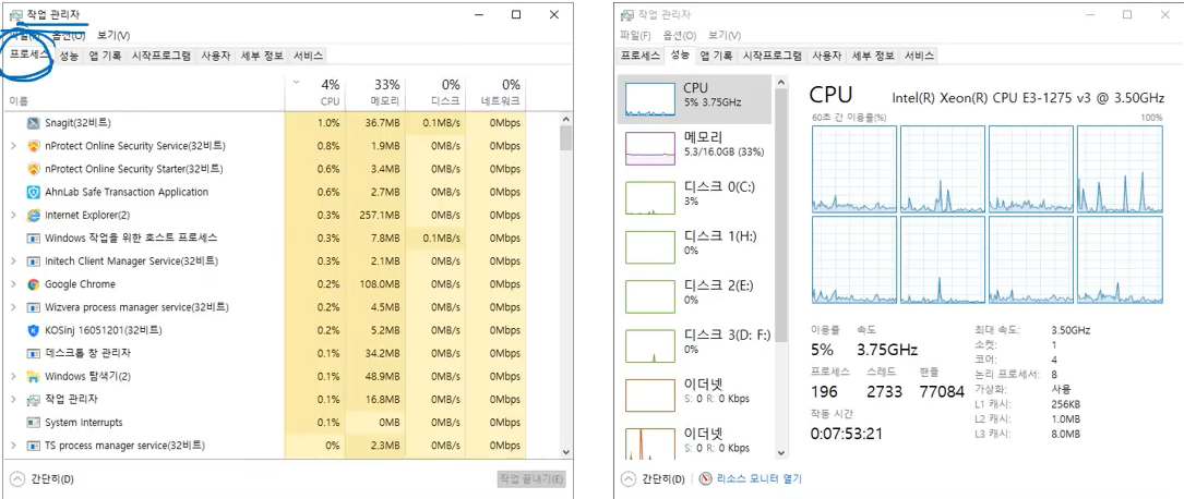 하드웨어, 운영 체제, 프로세스, 스레드 컴퓨터가 국가라면 운영체제는 '정부조직', 스레드는 국민(개인), 프로세스는 '가족', 하드웨어는 '영토'