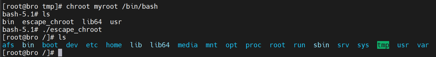 [tmp]# cp /usr/bin/ls newroot/bin/usr/bin/