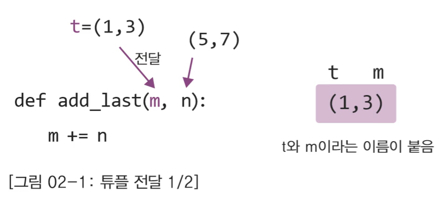 객체가 지닌 값의 수정이 불가능한 객체를 가리켜 "immutable 객체"라고 하며 대표적예로 "튜플", "문자열"이 있다. 객체가 지닌 값의 수정이 가능한 객체를 가리켜 "mutable" 객체라 하며 대표적인 예로 "리스트"와 "딕셔너리"가 있다.